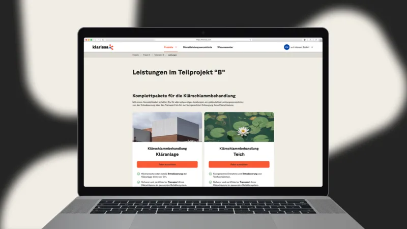 Für den Einstieg reichen grundlegende Angaben zu Standort, Schlammmenge und gewünschten Leistungen. klarissa führt Sie durch alle weiteren Parameter mit kontextbezogenen Erläuterungen direkt im Tool.